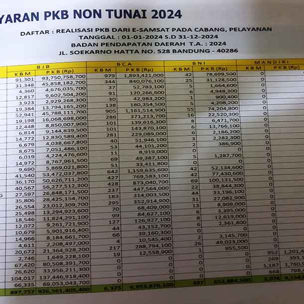 R4: 31 Kbm Rp 150.167.800 • R3: 0 Kbm Rp 0 • R2: 376 Kbm Rp 565.562.400 • E-Samsat: 64 Kbm